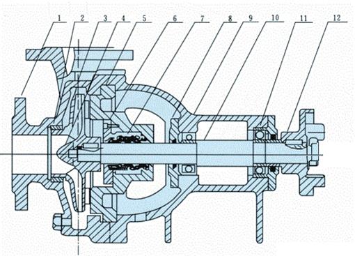 1. Cover Plate 2. Seal Ring 3. Impeller 4. Nut 5. Frame Plate 6. Seal Gland 7. Seal 8. Bearing Gland 9. Bearing House 10. Shaft 11. Bearing 12. Coupling